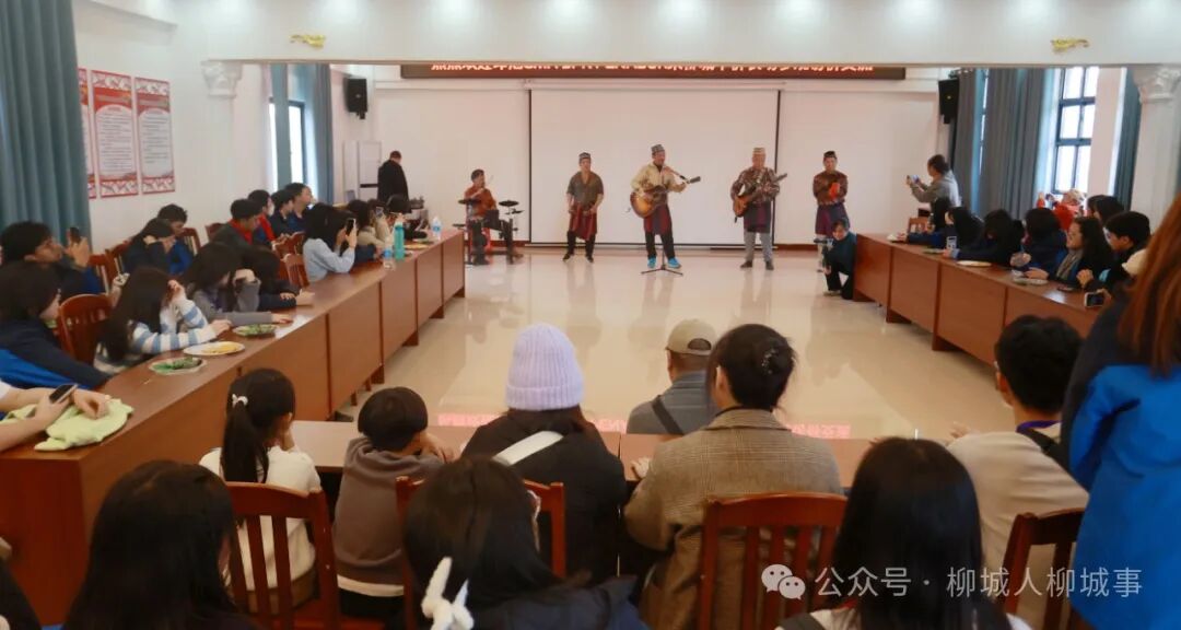 聯(lián)誼會上,由歸僑、僑眷組成的柳僑WL彈唱樂隊,為學生們彈唱印度尼西亞民歌。歡快的旋律,讓學生們不由自主加入其中,將現(xiàn)場的氣氛迅速點燃。