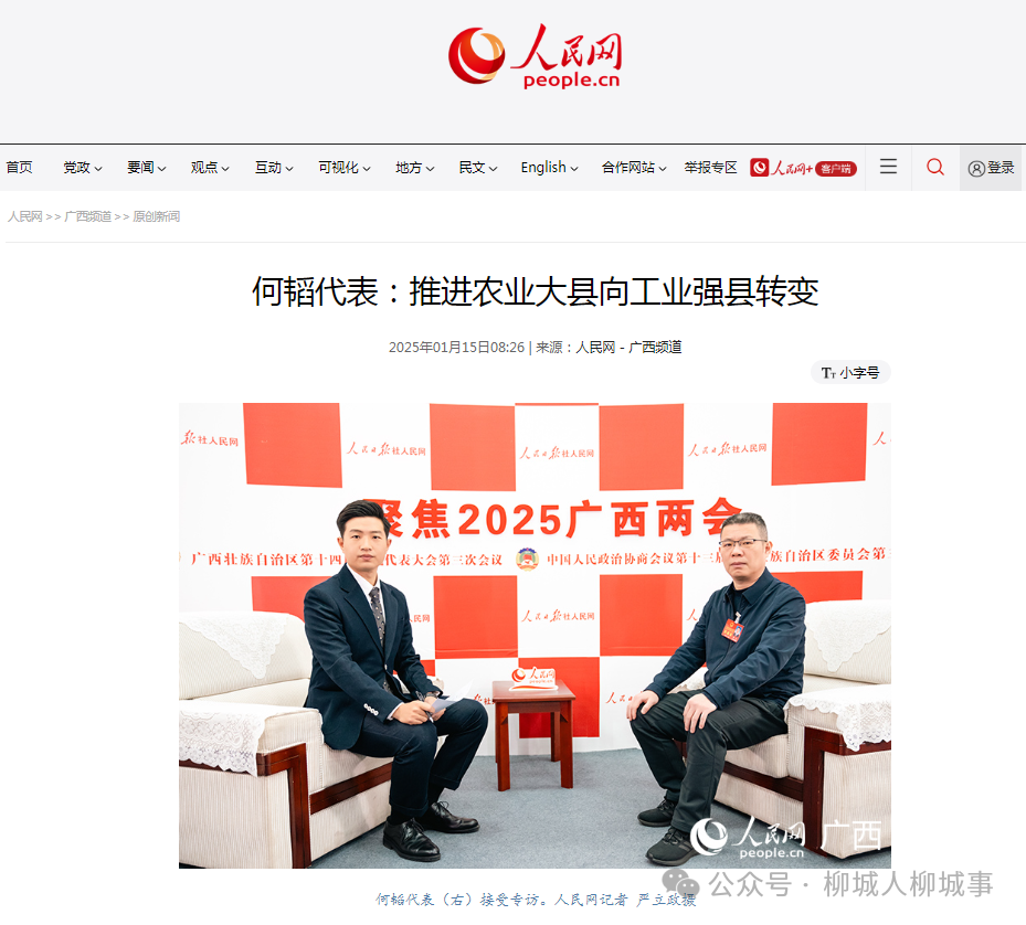 人民網(wǎng)南寧1月15日電 (付華周)1月14日,廣西人大代表、柳城縣縣長(zhǎng)何韜接受人民日?qǐng)?bào)客戶端、人民網(wǎng)專訪。何韜代表表示,今年的政府工作報(bào)告對(duì)縣域經(jīng)濟(jì)發(fā)展作出專門部署,柳城作為柳州工業(yè)高質(zhì)量發(fā)展的主要拓展區(qū),工業(yè)有基礎(chǔ),農(nóng)業(yè)有特色,“自治區(qū)提出的這一鮮明導(dǎo)向進(jìn)一步明確了我們今年工作的關(guān)鍵點(diǎn)、發(fā)力點(diǎn)和突破點(diǎn),這為我們推進(jìn)農(nóng)業(yè)大縣向工業(yè)強(qiáng)縣轉(zhuǎn)變發(fā)展提供了方法路徑,也更加堅(jiān)定了我們做好工作的信心和決心?!?/span>